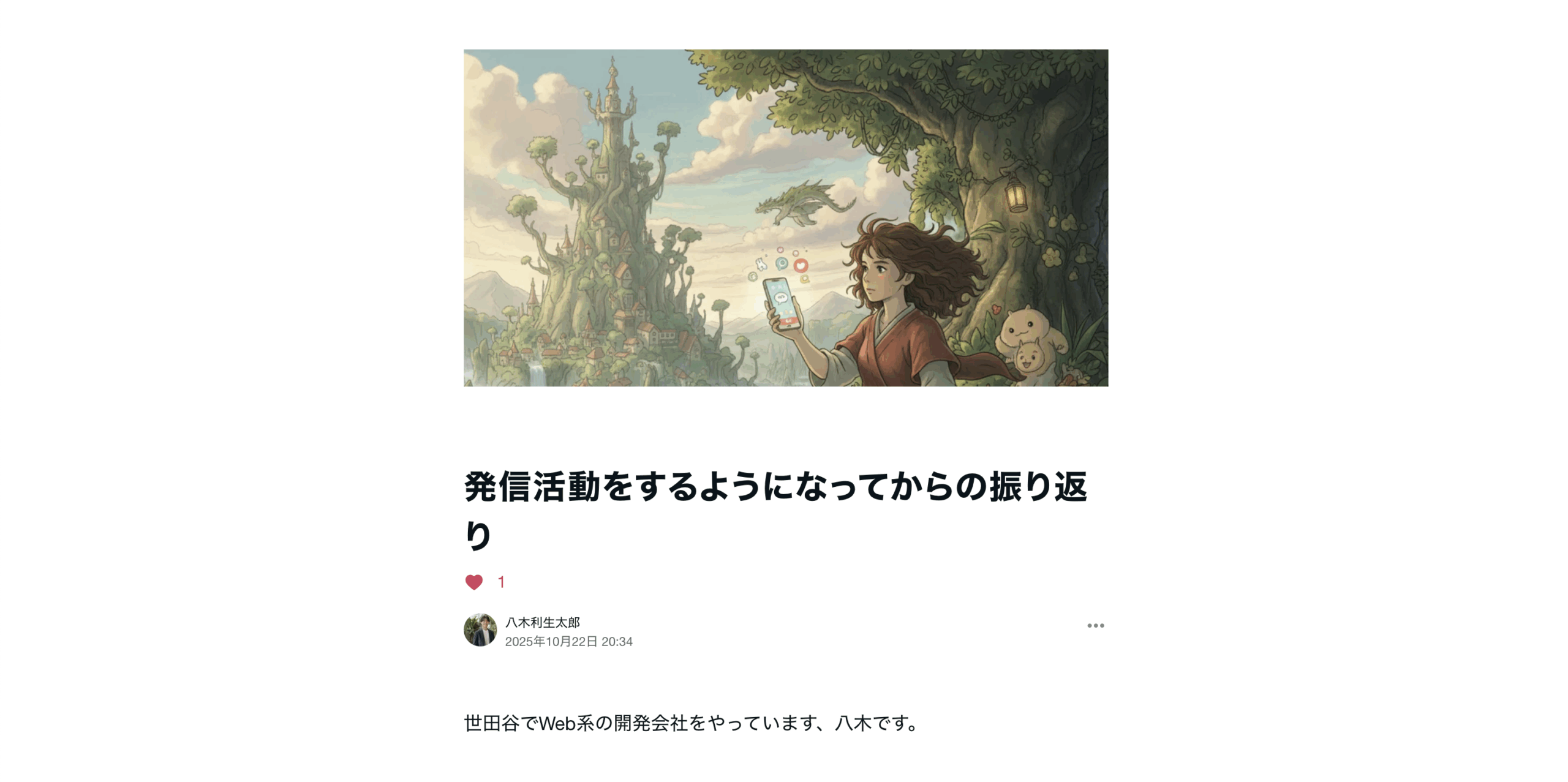 代表の八木の新しいnoteが追加されました 2026 1/30 お知らせ 2025年10月22日 代表の八木のnoteで新しい投稿が追加されました。 ぜひご覧ください。 note(ノート) 発信活動をするようになってからの振り返り|八木利生太郎 世田谷でWeb系の開発会社をやっています、八木です。 最近、note・X・Voicyで色々投稿し始めて、その中で検証した事や気付きに書いていきます。 (週1で投稿について振り返... お知らせ